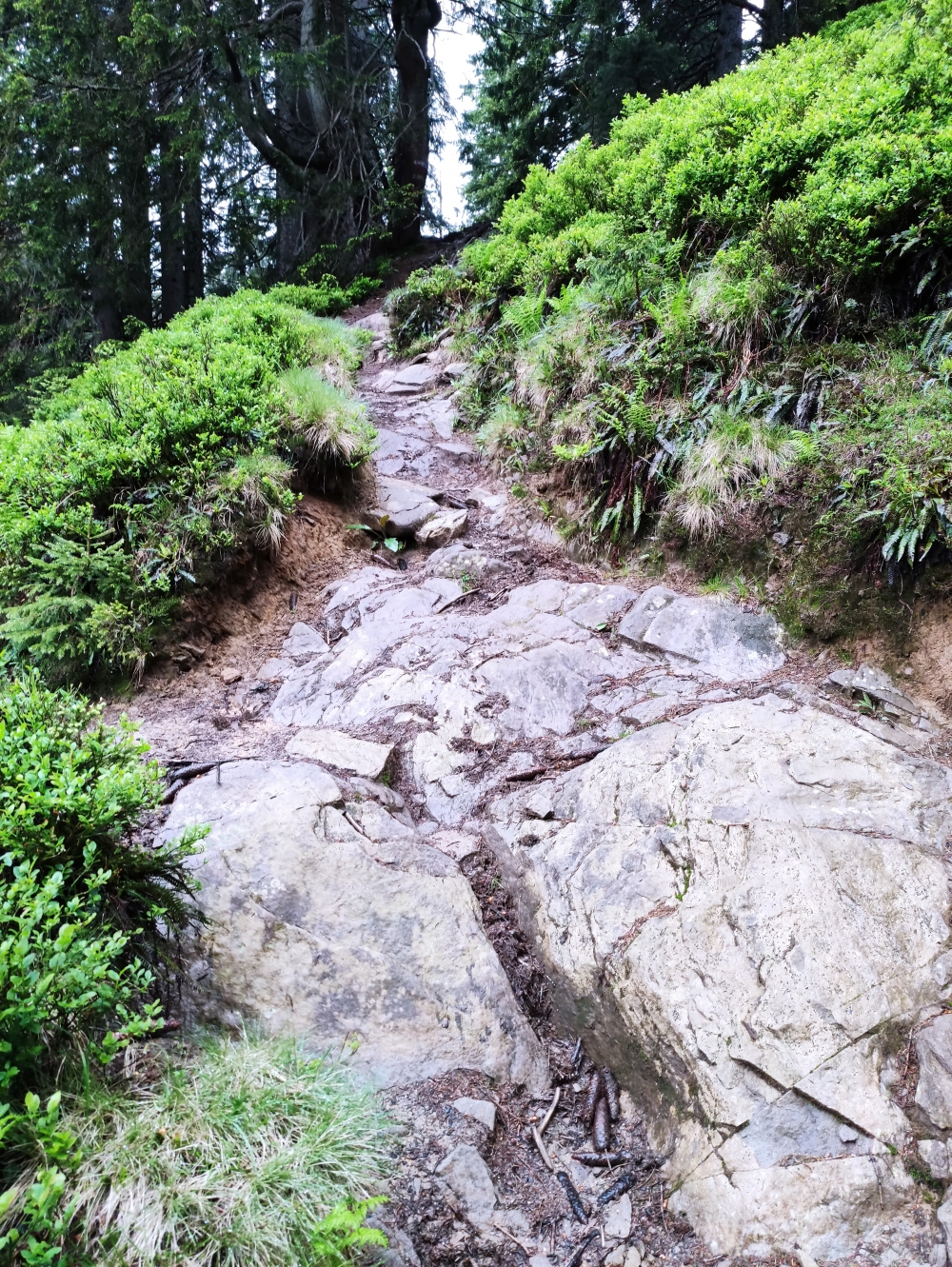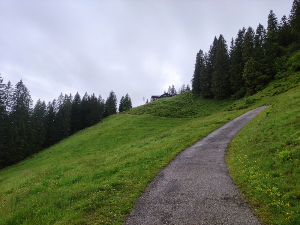 Wir folgen nun stets der Teerstraße. Zunächst bis zu einer Gabelung an der wir uns links halten und dann stets dieser Straße folgend. Diese is bis zum höchsten Punkt ca 15 Minuten vor dem Berghaus Schwaben geteert und eignet sich daher auch ideal zum Mountainbiken.