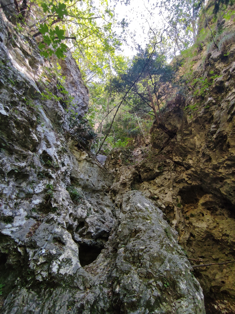 Der Rio Secco Klettersteig führt entlang eines Bachlaufes durch eine kleine Schlucht auf der Ostseite des Etschtals unweit der Autobahn kurz und knackig in die Höhe.