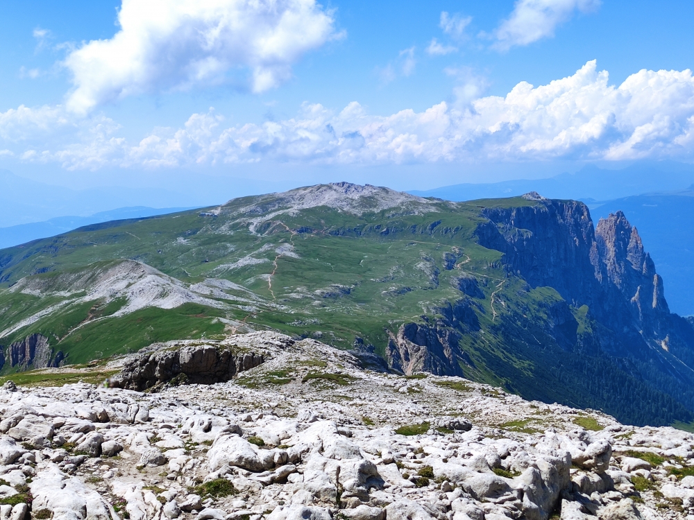 Ziel der knapp elfstündigen, Klettersteig-Tour "Laurenzi Klettersteig und Maximiliansteig" ist der 2655 Meter hohe Roterdspitze-Gipfel bei Tiers. Vom Start "Grasleitenpasshütte" auf 2601m bei Tiers sind immerhin rund neunhundertzwanzig Höhenmeter zum Ziel Roterdspitze zu überwinden. Danach sind bis zum Ende (Seilbahn Tiers Talstation) noch rund einhundertsiebzig Höhenmeter zu überwinden.Auf der Wanderung kann man gleich am Startpunkt und während dem Aufstieg einkehren.