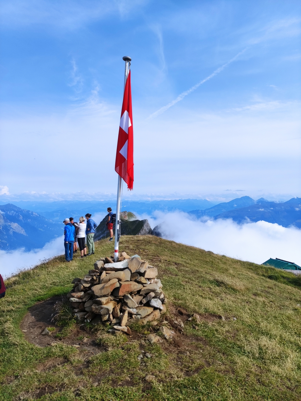 Kein Gipfelkreuz ziert den höchsten Punkt, sondern eine stolze schweizer Flagge.