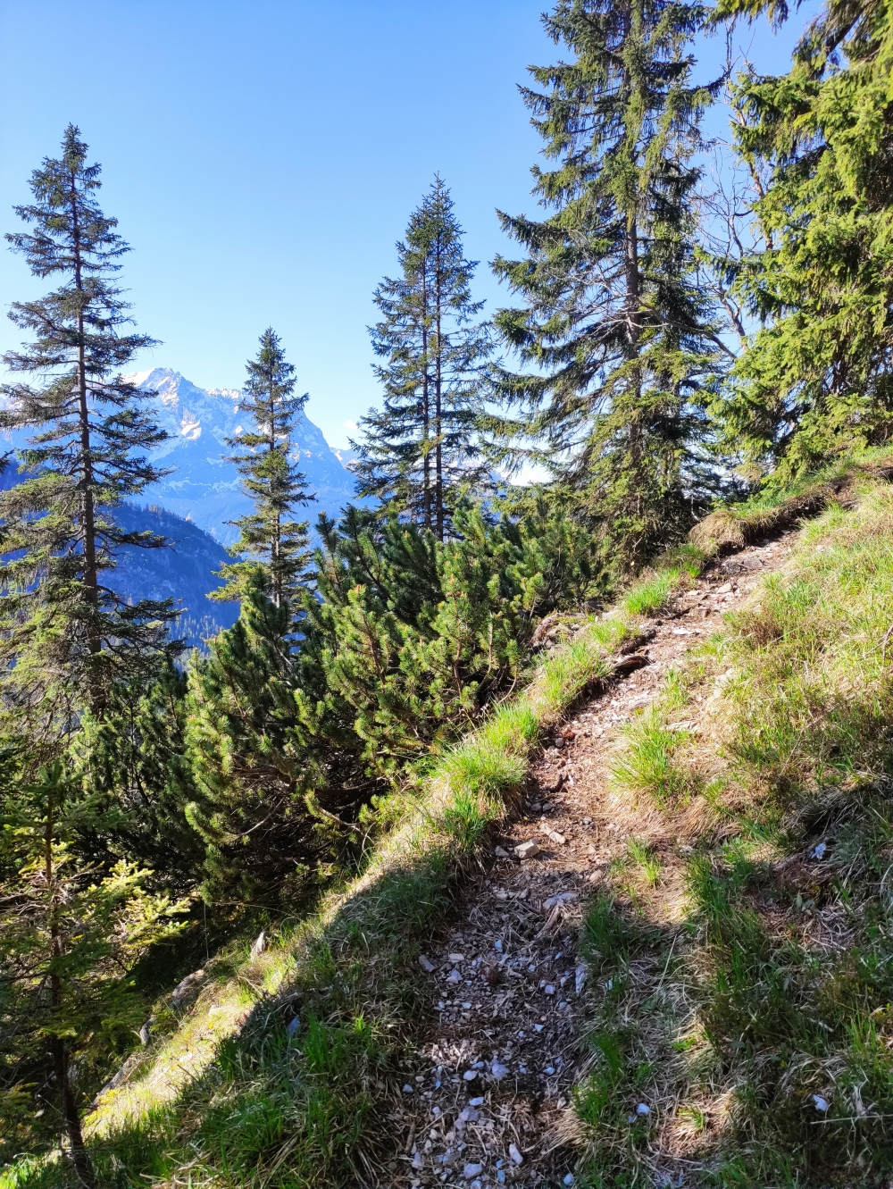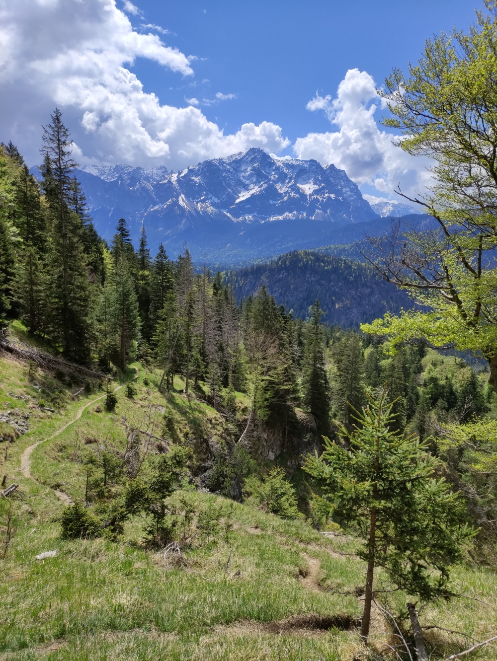 Um den besseren Zugspitzblick im Abstieg zu haben und dann zum Auto nur den kleineren Forstweganteil haben wir uns für die Tour gegen den Uhrzeigersinn entschieden.