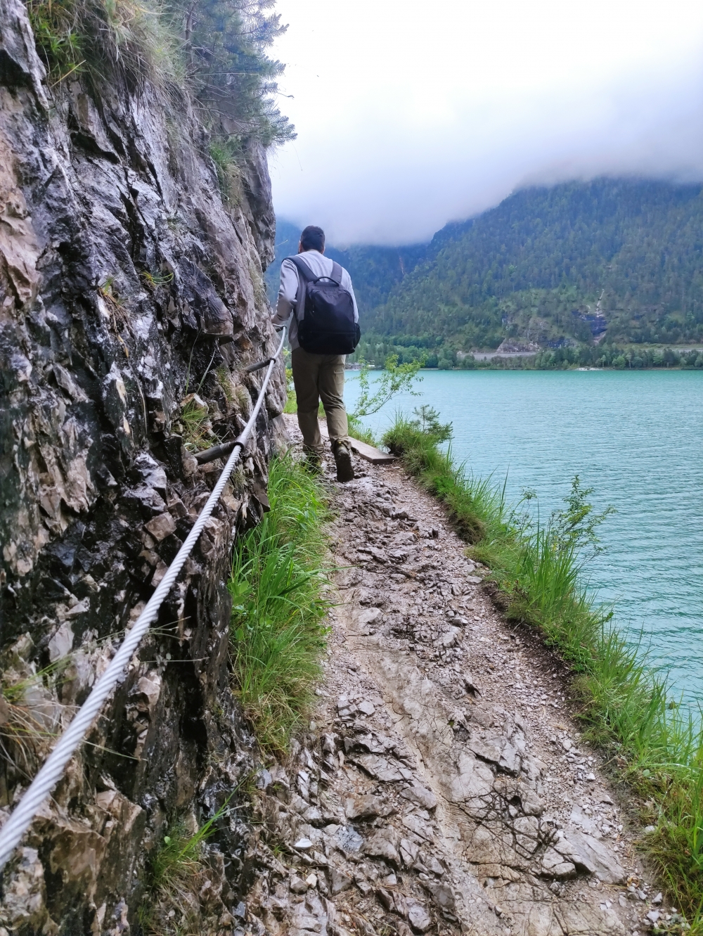 Der Mariensteig startet nun mit einigen Stufen steil bergauf, stets durch Drahtseilnetze gesichert. Leichter als der erste Teil geht nun wellig zum Nordende des Achensees.