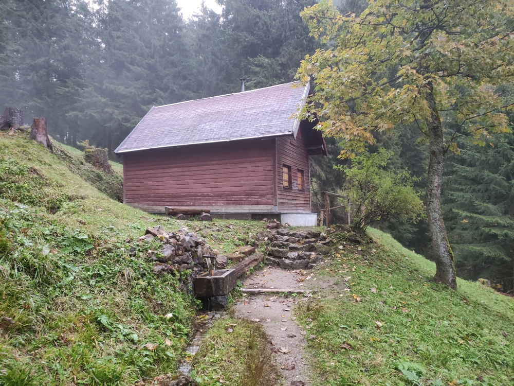 Nach einer guten Stunde erreichen wir die Kilianshütte, an deren Brunnen wir gegebenenfalls nochmals Wasser fassen können.