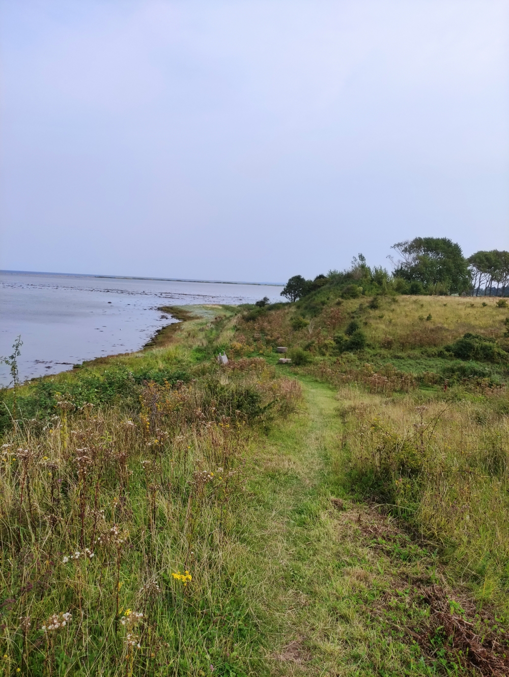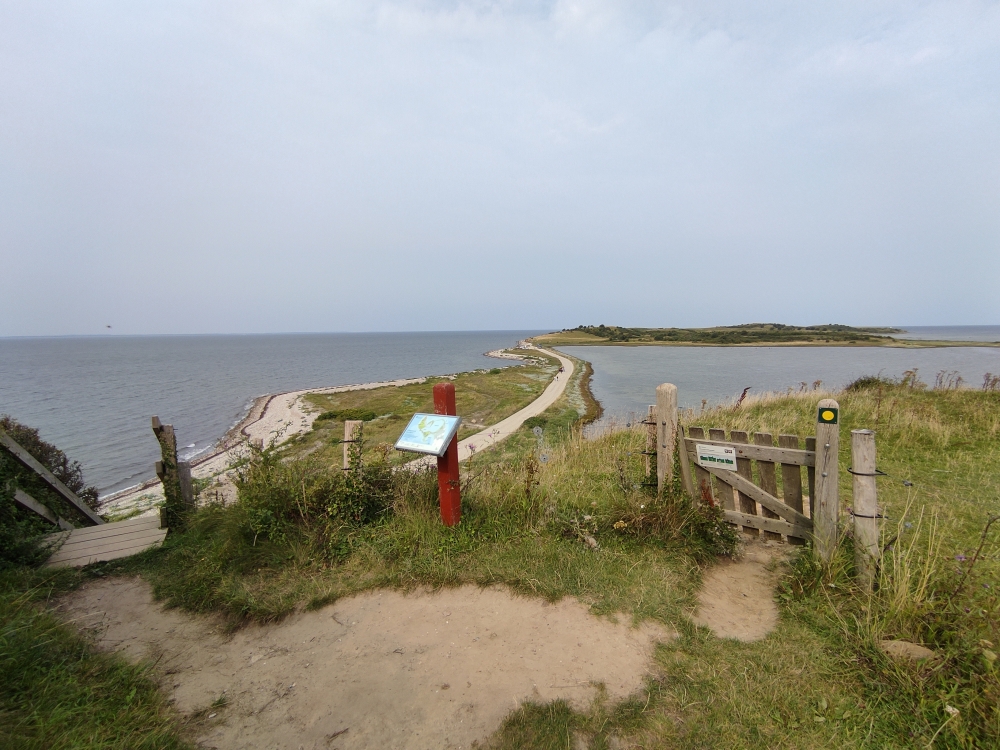 Bald schon geht es sanft nach unten und fast auf Meereslevel angekommen geht es links durch ein weiteres Gatter zum Uferweg, der uns nach links zurück zum Ausgangspunkt bringt.