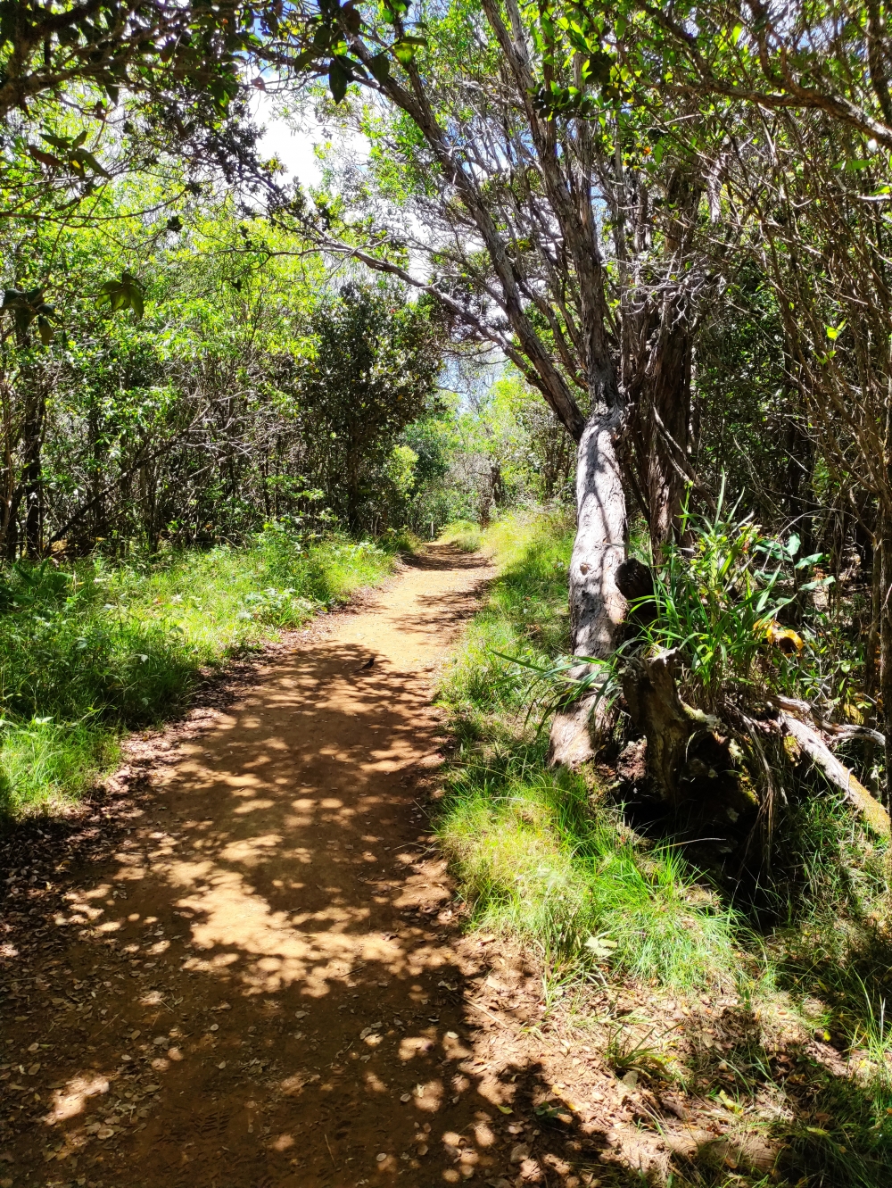 Etwa 10 Minuten vor diesem führt ein Verbindungsweg zum Nualolo Trail. Diese horizontale Querverbindung r ist im Gegensatz zu den beiden bekannten Trails kaum begangen.