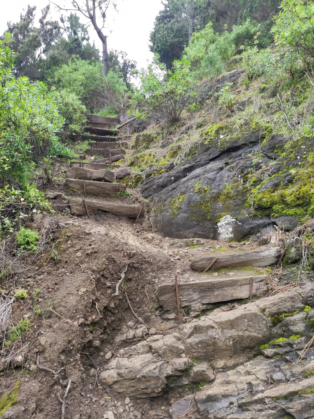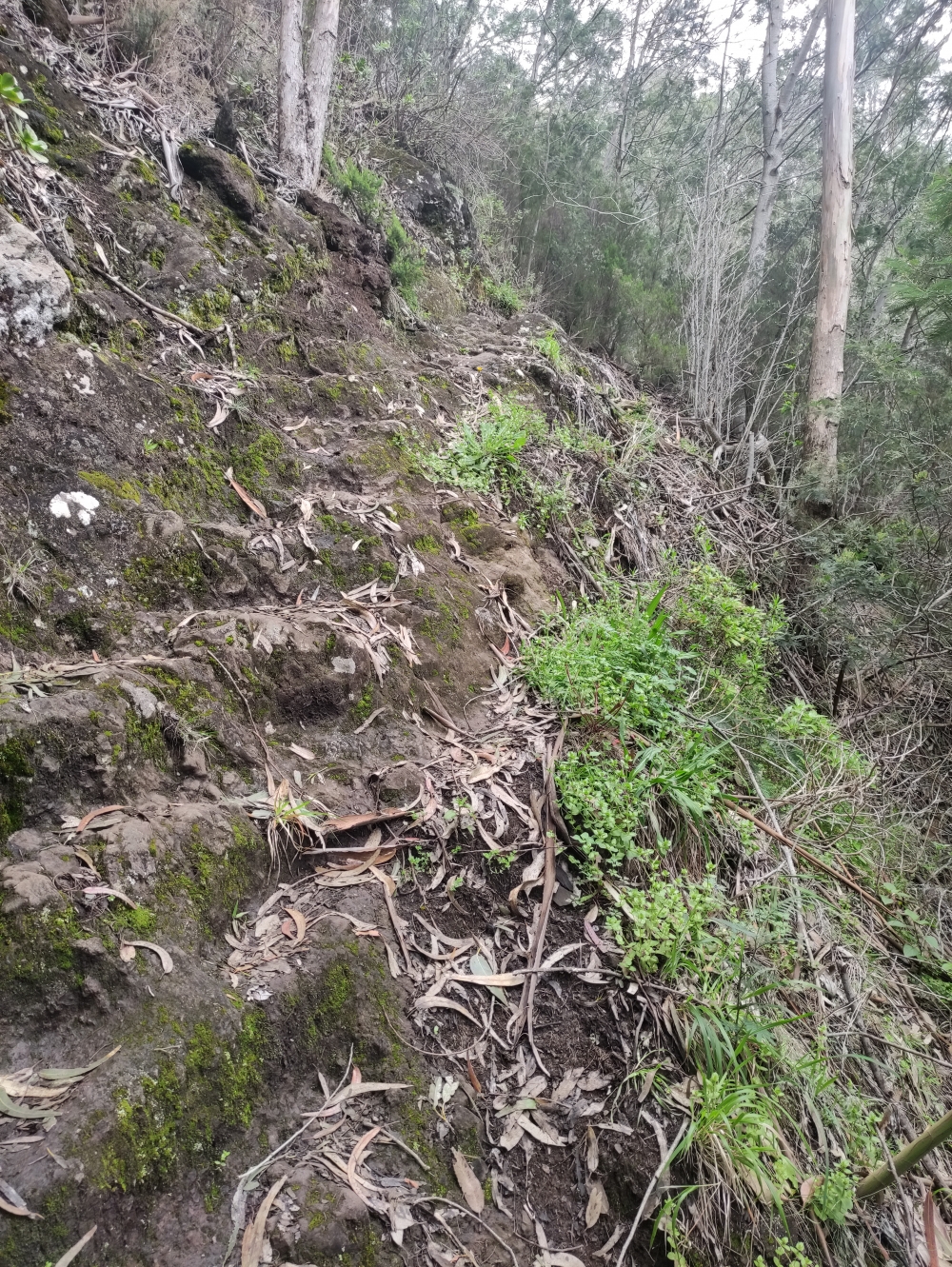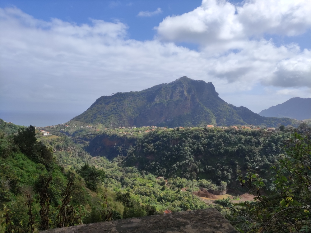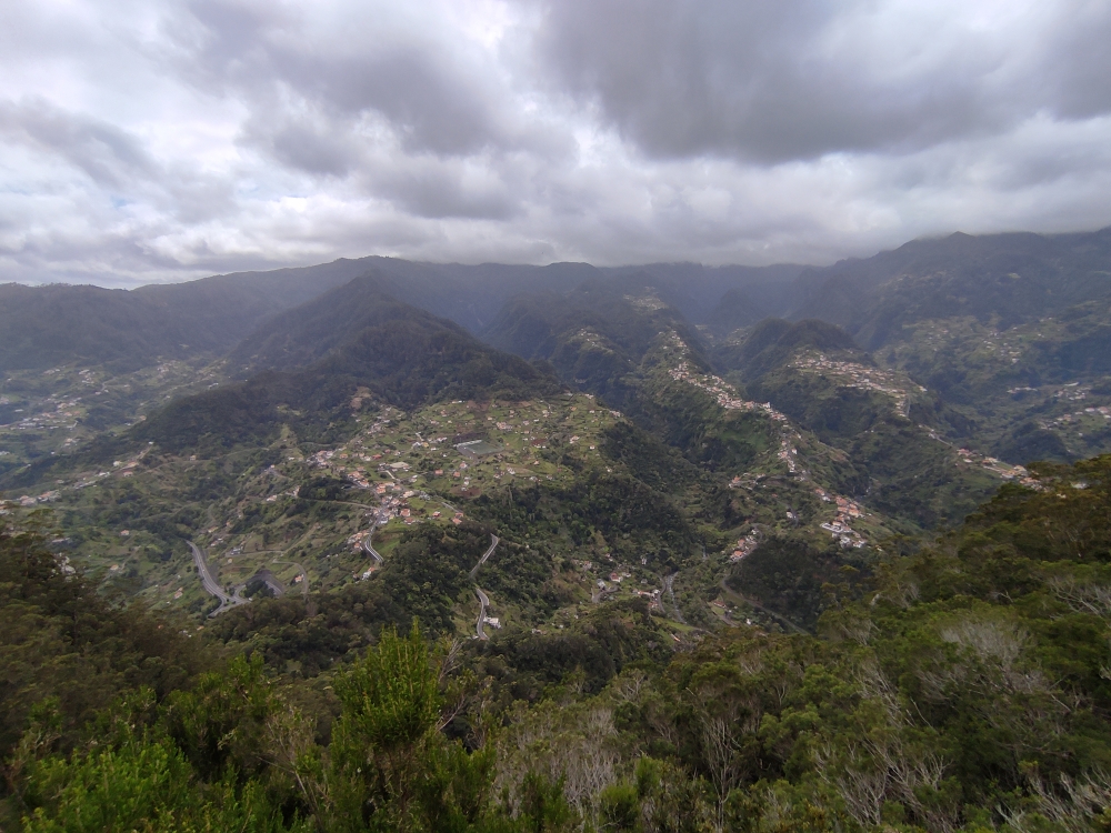 Der Abstieg ist nun deutlich steiler und unwegiger. Vor den ersten Häusern versperrt ein Baum den Weg und wir gehen links ein paar Meter hinab zur Levada da Penha de Aguia East welcher wir nach rechts folgen.