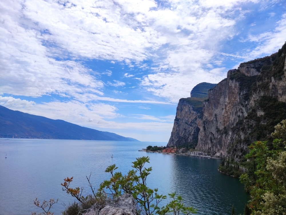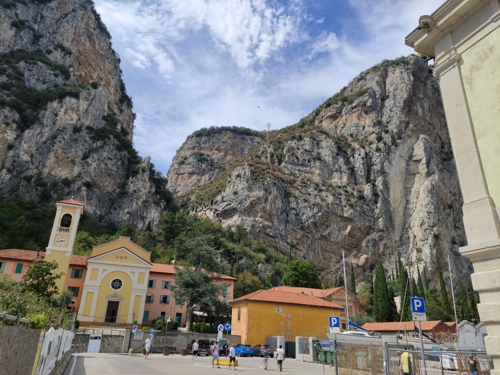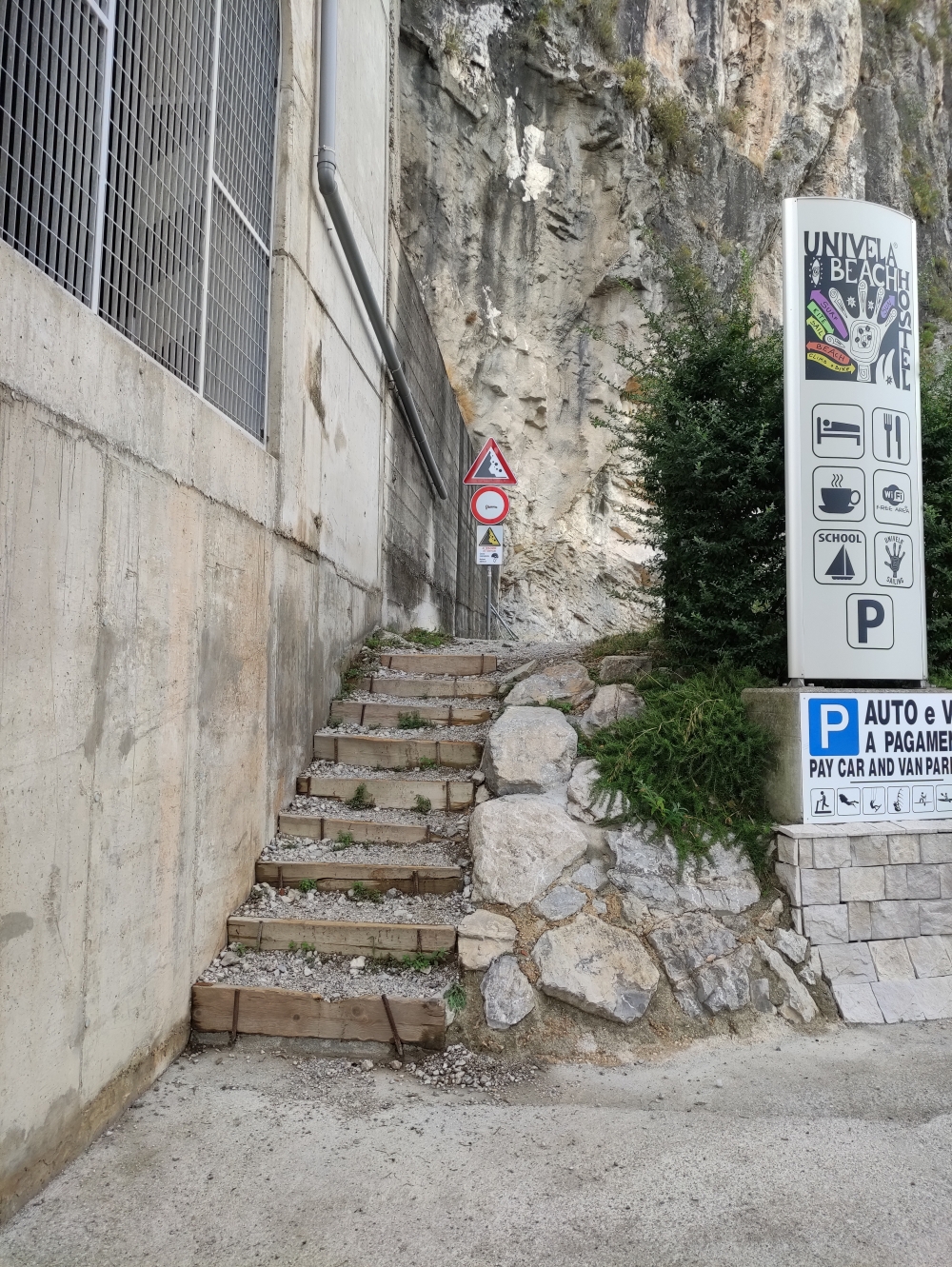 Vom kostenlosen aber oft belegten Parkplatz unweit der kleinen Altstadt von Pieve geht es zunächst zum Aussichtspunkt hoch über dem Gardasee. Direkt rechts davon startet der Wanderweg nach Campione.