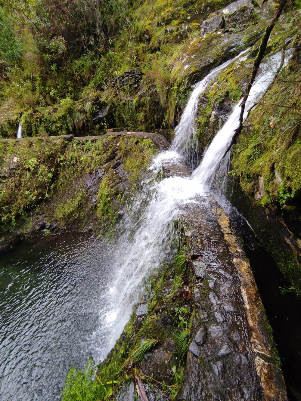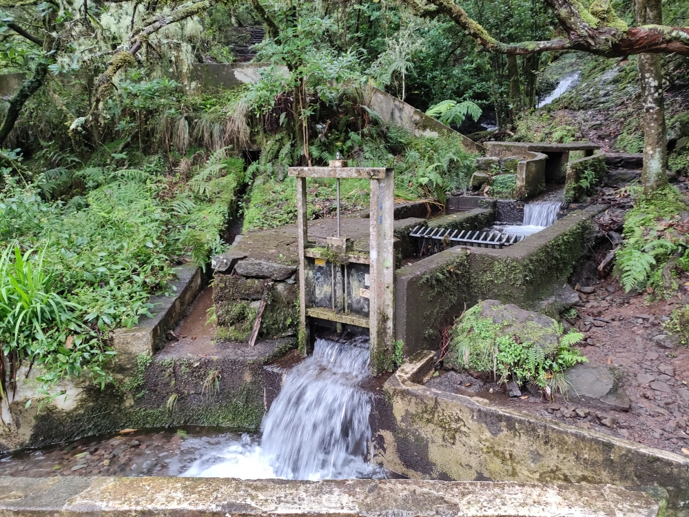 Nach gut drei Kilometern erreichen wir eine Levadaeinmündung. Hier werden wir gelich rechts bergauf gehen. Vorher lohnt aber noch der kurze Abstecher vor der Brücke nach rechts um eine Quellfassung zu sehen.