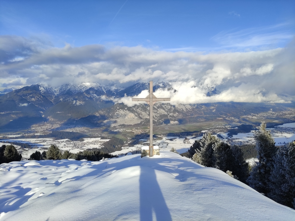 Wanderung Salfeins: Kreuz (Bildmitte) am Aussichtspunkt